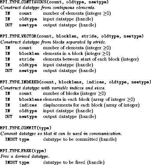 Figure 8.12: MPI derived datatype functions.