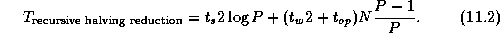 The recursive halving algorithm sends twice as many messages as the simpler algorithm does, but less data. It also performs less computation. Hence it will be more efficient for certain values of N and P and on certain machines. A robust hybrid algorithm can be designed that starts with the recursive halving approach and switches to an exchange algorithm after a certain number of stages so as to avoid some of the broadcast communication.