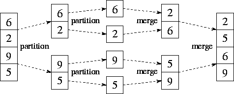 Figure 11.4: Mergesort, used here to sort the sequence [6,2,9,5].