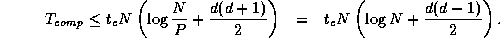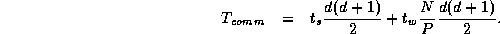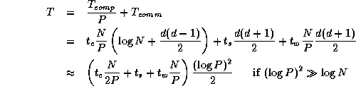 Because the algorithm is perfectly balanced, we can assume that idle time is negligible. Thus, we obtain the following model for parallel execution time: