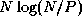 Because each compare-exchange requires one message containing N/P data, the per-processor communication cost is