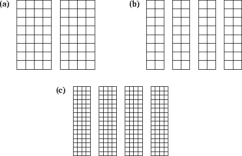 grid points and must communicate with two neighbors. In (b),