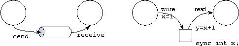 Figure 5.3: Alternative synchronization mechanisms. On the left, the