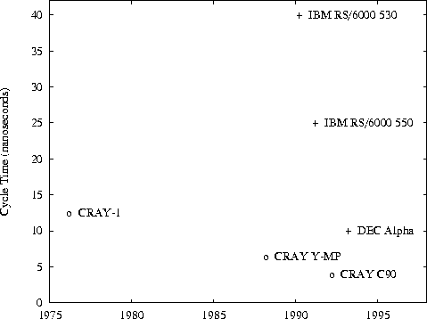 factor of 3 in sixteen years, from the CRAY-1 (12.5 nanoseconds) to