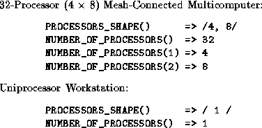 Figure 7.8: Examples of values returned by HPF system inquiry intrinsic